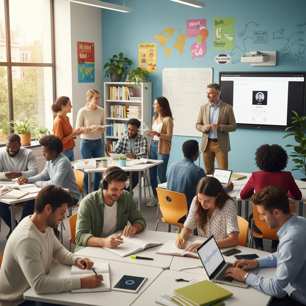 نحن نوفر تعلم اللغات (الإنجليزية، الإسبانية، الفرنسية، الصينية، والمزيد) والتحضير للامتحانات مثل IELTS.